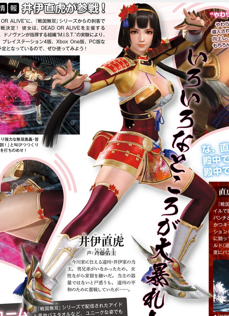 A última edição da Famitsu Weekly liberou muitas imagens do novo personagem que ingressará no Dead or Alive 5: Last Round, em março. A nova personagem é Naotora Ii da série Samurai Warriors.