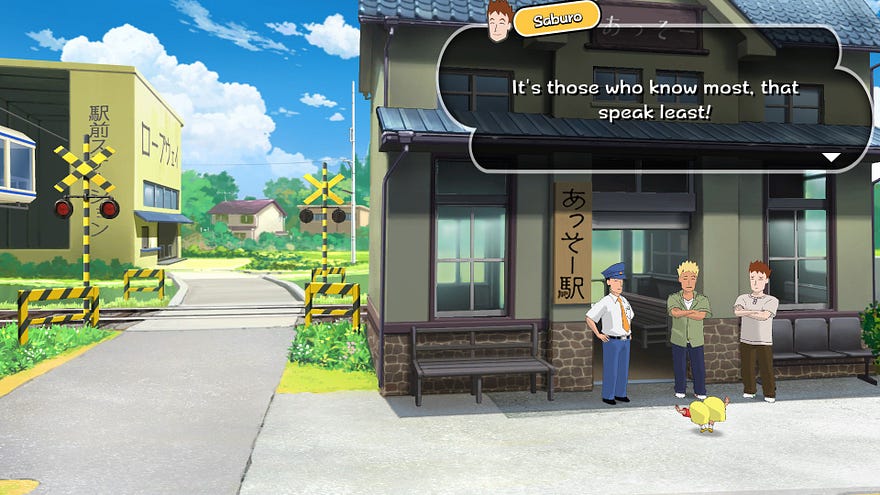 É um tipo de deslumbrância infantil inocente e meio vaga que carrega o tom do jogo todo. Desde o início é possível sentir o impacto que Shinnosuke, sua amiga Lalako, e as outras crianças e adolescentes locais tem nos outros habitantes de Asso, mas enquanto os adultos veem isso com melancolia, as crianças veem com atitudes despreocupadas e simplistas, o que separa seus sentimentos em dois pedaços iguais, mas retratados de maneiras diferentes.