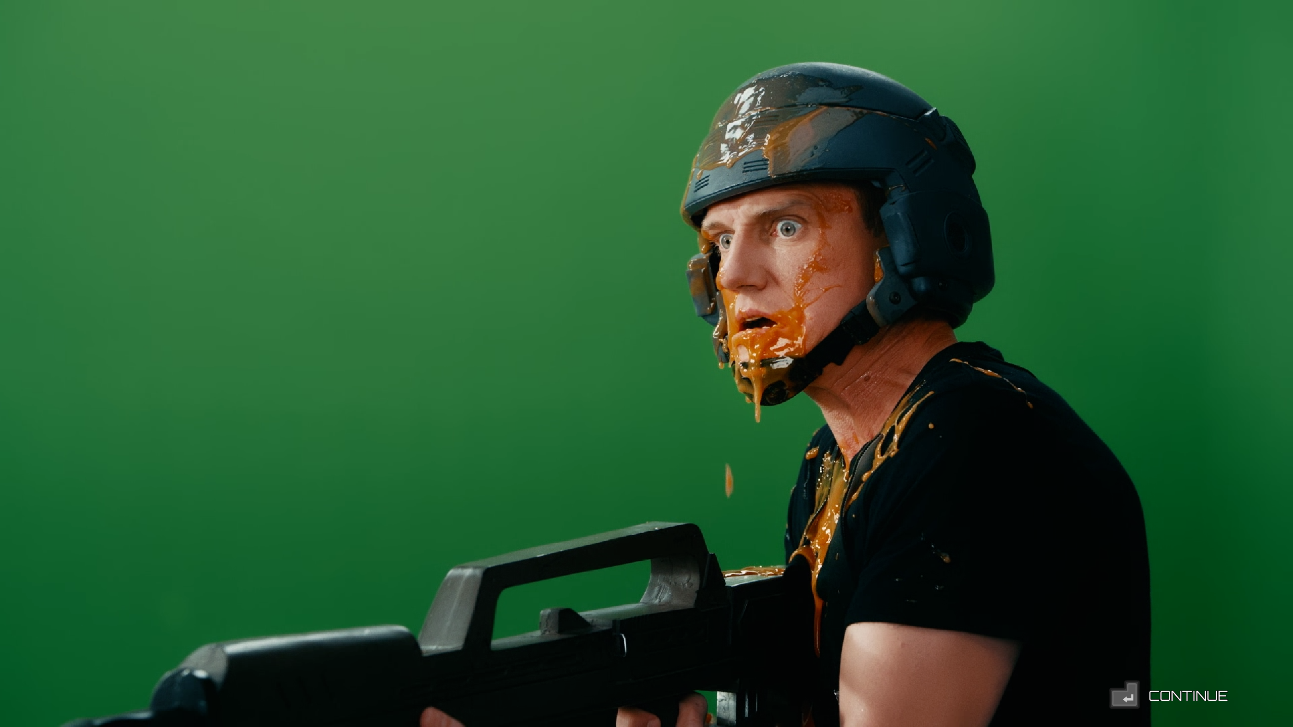 Essa parte toda do jogo constantemente parar para fazer propagandas absurdas e ficar condecorando o jogador para “se alistar e se tornar um cidadão” é um acerto muito certeiro no centro nervoso do tom do filme de sátira. Inclusive, as cenas com atores reais conversando, incluindo nosso grande Casper Van Dien que atuou no filme original como o protagonista Jonny Rico, e a Charlotta Mohlin de Immortality para Sammy (ou Major Samantha Dietz), que se encaixa perfeitamente no papel e em toda a atmosfera exagerada do universo.